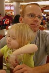 Sara quickly found the greatest entertainment. We ditched our jeans and put on shorts and t-shirts, what a feeling. And then we hit the moving sidewalk, first six laps with mom and then it was dad’s turn. Starbucks for us and ice cubes for our crazy kid. We tried our hardest to get her tired for the next 3 hour flight. As soon as the plane taxied down the runway she complained about the seat belt and a minute later she was out. Now we can rest too.