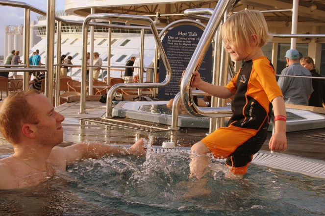 It’s noon and we are finally on the ship. Sara discovered that the “ice cream bracelet”(the life raft assignment bracelet that she had a freak out about as soon as they put it on her wrist. In a moment of brilliance I called it ice cream bracelet and Sara never questioned the fact that everybody was getting ice cream even without wearing one) really works. During the next two weeks she will have ice cream after every lunch and dinner.