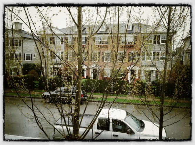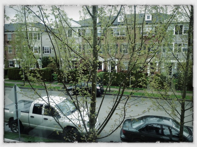 On the weekend we planted Oregon Sugar peas in the planter, stir fry blend greens on the deck, to,tomatoes from Amsterdam Green house, and finally some mesclun greens together with nasturtiums for a colorful salad. Now we just need some sun. Sara’s window planter is not ready either, maybe tomorrow.